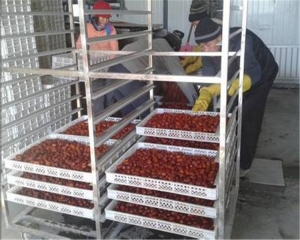 3.顶风式大枣烘干设备的整体结构利于烘干过程中各项参数的监测,箱体内采用数字化控制和检测,使空气循环和加湿,加温,房间温湿度得到有效控制,保证红枣干燥质量,烘干后的大枣除能有效地避免霉变、蓝变等变色现象的产生外还有效地防止表裂、端裂、内裂等多种干燥问题的产生。