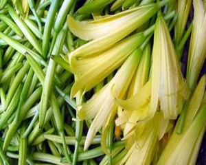 黄花菜采摘:上午10点钟前选择花蕾在裂嘴前1~2小时采摘, 这时的黄花菜产量高,质量好。