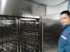 3. MCHS-120,宽2580*高2200*厚1300,循环风机2台,脱水机一套,7.5KW加热装机功率,64托盘尺寸:600*800*75mm电压:380V 50Hz ,烘干干海参120公斤