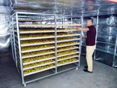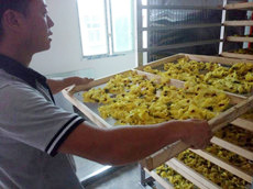 3、热风在烘箱内循环均匀的吹到花卉表面,内、外同时加热,无焦叶、焦边、碎屑等,产品质量好:由于花卉的表面温度不太高,叶绿素变化少,色泽绿翠而耐藏,香气损失少,干燥均匀。