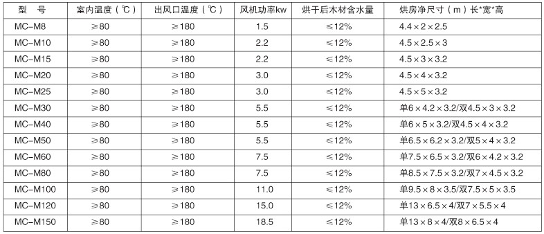 蒸汽木材专用烘干机,可烘干各种木材,各种规格木材。具有高效节能、案例可靠、干燥周期短,干燥质量好,干燥成本低等优点,广泛用于大、中、小型木材加工企业,特别适用于经营木材加工厂家。迈创系列木材专用烘干机,在正常运转时,利用蒸汽发生器产生足量热能,在热能干燥系统中被干燥介质充分吸收,产生摄氏50-120度左右的温度,在循环风机的作用下,高温气流通工艺的要求。饱和湿蒸汽可在短时间内使木材的表面温度和内部湿度趋于一致,从而达到了木材内部和外部同时干燥的目的,对木材个体大小不同、采用间断加热烘干工艺,解决了木材在烘干过程中出现的内裂、端裂、变形等缺陷,使优质木材成品率大大提高。木材烘干设备配有热能回收系统,大幅度地降低了烘干成本,缩短了烘干周期。当木材含水率降至30-35左右以下,经过高温干蒸,可将寄生在木材内的所有蛀虫及虫卵全部除死,解决了因蛀虫而产生的不良影响,为企业提高了经济效益。