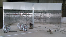 1、利用耐高温高湿轴流风机对翅片散热器表面进行热交换,因为散热器表面翅片管面积增大,通过热风循环系统使得烘房内温度分布比较均匀。